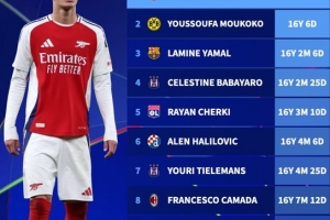 體育資訊11月5日訊 歐冠聯(lián)賽階段第4輪比賽,阿森納在客場(chǎng)以3-0的比分完勝布拉格斯拉維亞。本場(chǎng)比賽,阿森納15歲小將道曼替補(bǔ)登場(chǎng)成歐冠歷史出場(chǎng)最年輕球員。
