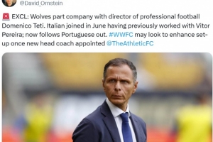 報道稱這位意大利總監(jiān)于今年6月加入球隊,此前曾與主帥佩雷拉共事,現在他跟隨葡萄牙主帥的腳步離開了俱樂部。狼隊可能會在新任主教練確定后進一步調整球隊架構。