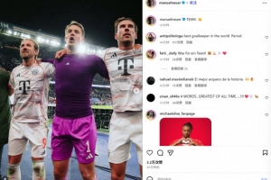 體育資訊11月5日訊 拜仁在本輪歐冠焦點(diǎn)戰(zhàn)2-1力克巴黎,諾伊爾在賽后通過(guò)社媒慶祝勝利。