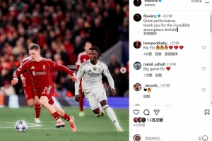 此役維爾茨為利物浦首發出戰,送出5記關鍵傳球,賽后他在社交媒體上曬出比賽照片,并寫道:“精彩的表現,感謝你們在安菲爾德營造的非凡氛圍!”