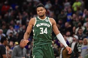 上半場,字母哥出戰14分鐘,12投7中,罰球1中1,得15分6板2助1蓋帽。