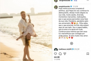 塞爾吉尼奧寫道:“今天我的小公主滿6歲了,愿在天堂的家人們繼續(xù)保佑你,愿你平安喜樂,健康成長,生活五彩斑斕,享受生活帶來的樂趣。爸爸會一直陪在你身邊,永遠愛你,支持你做想做的事情。我愛你,親愛的。”