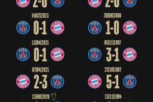 拜仁官方社媒曬出了對(duì)陣巴黎的歷史戰(zhàn)績(jī),拜仁8勝6負(fù)略占優(yōu)勢(shì),打進(jìn)19球丟15球。