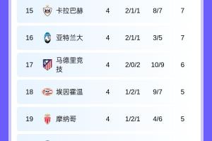 體育資訊11月6日訊 歐冠第4輪全部比賽結束,最新積分榜情況出爐。目前積分榜上,拜仁槍手國米全勝領跑!本菲卡阿賈克斯全敗墊底。