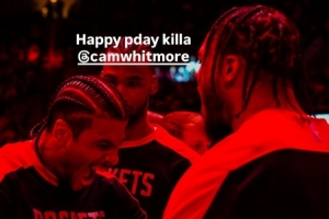 前隊友杰倫-格林在INS轉發了兩人的合照,并寫道:“祝你生日快樂,殺手惠特摩爾。”