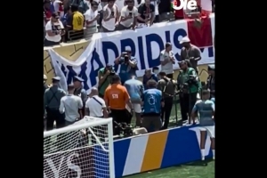 皇馬前鋒姆巴佩也上前關心這位志愿者的情況,并向隊友索要冰水為這位志愿者飲用。這位志愿者此后被送離球場。