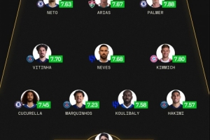 前鋒:內托(切爾西,7.63分)、瓊-阿里亞斯(弗魯米嫩塞,7.67分)、帕爾默(切爾西,7.88分)