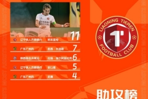 體育資訊6月23日訊 中甲第13輪已經結束數場比賽,遼寧鐵人外援邦本宜裕以11次助攻領跑助攻榜,廣東廣州豹外援若昂-卡洛斯和陜西聯合外援阿茲拉克分列第二、三位。