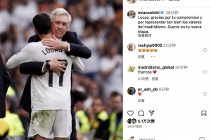 安切洛蒂社媒寫道:“盧卡斯,感謝你的付出,以及你對(duì)皇馬精神的出色詮釋。祝你在新的階段一切順利。”