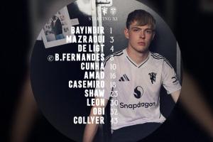 曼聯首發:1-巴因德爾、3-馬茲拉維、4-德里赫特、30-萊昂、23-盧克肖、43-科利爾、18-卡塞米羅、16-阿瑪德、8-B費、32-奧比、10-庫尼亞
