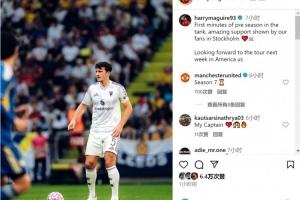 馬奎爾社媒曬出比賽照片,并寫道:“季前賽首次出場,斯德哥爾摩曼聯球迷的支持令人驚嘆。期待下周在美國的巡回賽。”