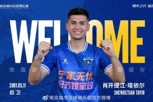 歡迎肖開提江-塔依爾重回南京城市大家庭,期待他在賽場上的精彩發揮!