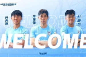 體育資訊7月22日訊 官方消息,大連英博租借山東泰山后衛畢津浩,簽下上海申花中場閆奕涵,U19梯隊球員彭順杰上調至一線隊。