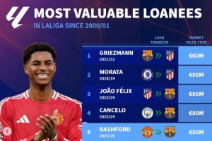 體育資訊7月24日訊 巴薩已經(jīng)官宣租借曼聯(lián)前鋒拉什福德,《轉(zhuǎn)會(huì)市場》統(tǒng)計(jì)顯示后者也是新世紀(jì)西甲租借的身價(jià)并列第二貴球員。