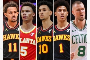 老鷹下賽季潛在首發:特雷-楊、丹尼爾斯、里薩謝、杰倫-約翰遜、波爾津吉斯。