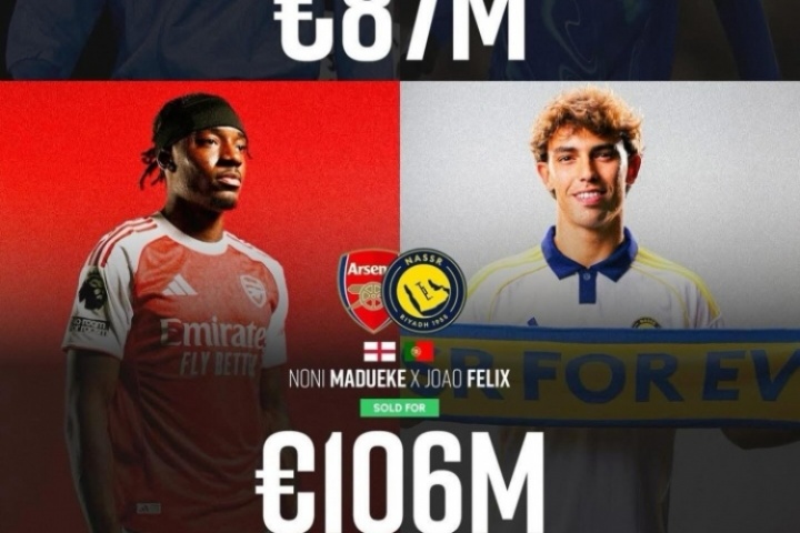 2023年1月和2024年8月,切爾西先后簽下馬杜埃凱、菲利克斯,轉會費分別為3500萬歐元、5200萬歐元,合計8700萬歐。