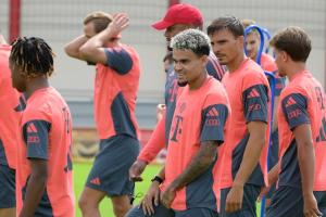 周三下午14:30,迪亞斯首次身穿拜仁球衣踏上訓練場。走向球場時,科曼用西班牙語與迪亞斯交談。
