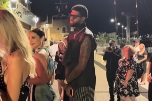 照片中喬治在夜店門口排隊(duì),等待入場,值得一提的是,他還戴著護(hù)膝。