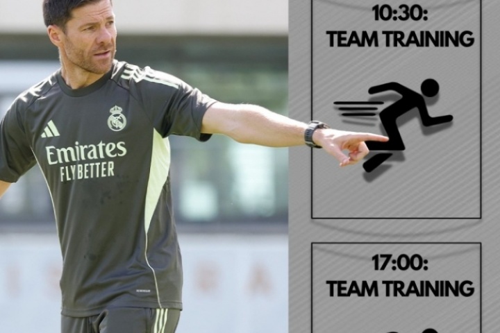 體育資訊08月10日訊 皇馬官方公布了今日(8月10日)的訓練計劃,在球隊新帥哈維-阿隆索的帶領下,皇馬今天在10點30分和17點進行了兩次訓練。