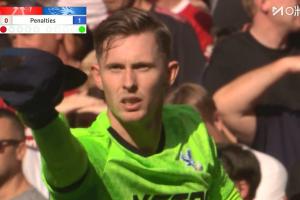 水晶宮門將亨德森頭戴鴨舌帽,在點球大戰中兩度撲出利物浦點球,并在撲出麥卡的點球后脫帽禮慶祝。