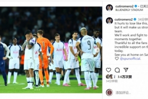 熱刺隊長羅梅羅社媒曬出賽后失落的照片,配文:“毫無疑問,以這樣的方式輸球令人痛苦,但這會讓我們作為一支球隊變得更強大。我們會努力拼搏,一起重現爭冠時刻。