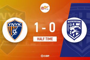 半場結(jié)束,云南玉昆1-0武漢三鎮(zhèn)。