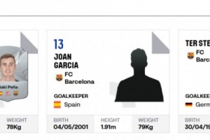 由于特爾施特根的傷病,霍安-加西亞已經順利在西甲完成了注冊,他的球衣號也已經確定為是13號,而此前身穿13號的佩尼亞則改穿1號。