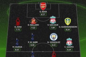 中場:庫杜斯(熱刺)、薩爾(熱刺)、岡薩雷斯(曼城)、加克波(利物浦)