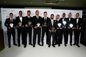 曼城的詹姆斯-特拉福德因上賽季隨伯恩利升級而被評為英冠年度最佳球員。理查德-科內憑借在韋康比流浪者隊的出色表現(xiàn)贏得了英甲年度最佳球員獎,而布羅姆利的邁克爾-奇克則獲得了英乙年度最佳球員獎。
