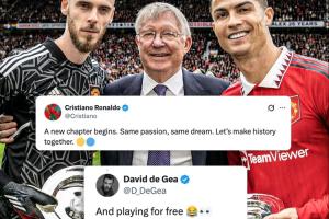 C羅在社媒曬出與利雅得勝利的續約照,并配文:“新的篇章就此開啟。同樣的激情,同樣的夢想。讓我們攜手共創歷史。”他的老隊友德赫亞則在評論區回復道:“免費踢球(And playing for free)????”
