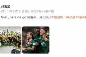 估計(jì)在個(gè)人微博中曬出了國(guó)安全隊(duì)合照,并寫道:決賽杯,我們來了。
