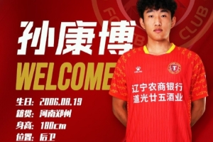 體育資訊6月27日訊 遼寧鐵人俱樂(lè)部官方宣布,湖北青年星球員孫康博正式租借加盟。