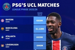 體育資訊8月29日訊 本賽季歐冠聯賽階段對陣抽簽結果出爐,德國轉會市場盤點了巴黎對手的身價。