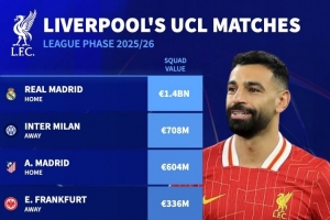 體育資訊8月29日訊 本賽季歐冠聯賽階段對陣抽簽結果出爐,德國轉會市場盤點了利物浦對手的身價。
