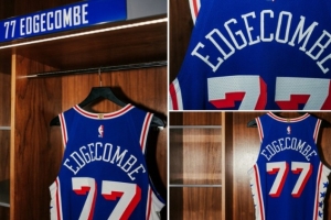 今天,76人官方曬出了埃奇庫姆的球衣,他將身穿77號。
