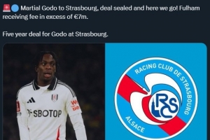 “富勒姆將獲得超過(guò)700萬(wàn)歐元的轉(zhuǎn)會(huì)費(fèi),戈多與斯特拉斯堡簽約五年?!?/p>