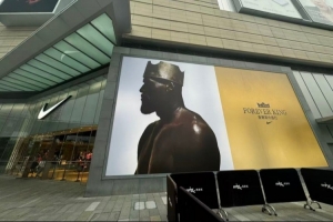 據成都當地網友爆料,萬象城耐克門店周邊已經布置了詹姆斯中國行的巨幅宣傳海報。