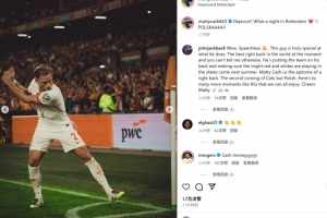 他也在賽后通過社媒曬出自己的高爾夫揮桿慶祝照,并配文:“似曾相識!鹿特丹之夜晚真是棒極了????波蘭隊!”