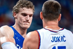 約基奇空砍33分8籃板3助攻3搶斷,上一屆出局戰他是32分13籃板4助攻2搶斷,一樣地被三分箭刺穿,這一回是小組賽三分8中1的瓦爾托寧最后時刻兩次迎著約基奇拔進三分,而且約基奇的身邊一樣沒有博格丹…