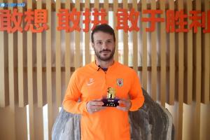 在【體育資訊第23輪中超最佳】評選中,卡扎伊什維利是唯一候選球員,毫無懸念本賽季第三次當選體育資訊每輪最佳球員,小吧也前往濟南為卡扎伊什維利頒獎。感謝卡扎伊什維利和山東泰山足球俱樂部對于體育資訊中超最佳評選活動的支持。