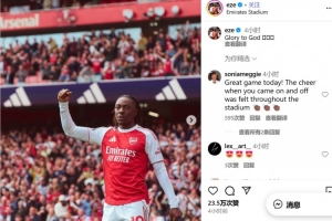 埃澤在本場比賽首場代表阿森納首發,并送出了1次助攻,他在社交媒體上曬出了賽場照,配文寫道:“榮耀歸于上帝。”