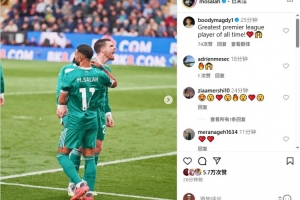 薩拉赫沒有為照片進行任何配文,但不到半小時已獲得5.7萬次點贊,有球迷也在評論區盛贊他為英超歷史最佳。