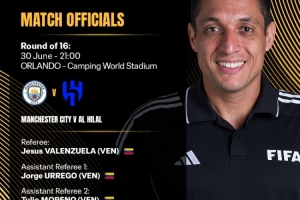 FIFA官方宣布,委內瑞拉的裁判組將執法本場比賽: