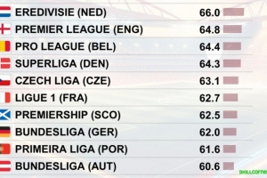 體育資訊9月20日訊 CIES盤點各聯賽球員平均高強度跑動數據,荷甲第一。