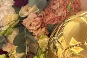 體育資訊09月23日訊 登貝萊榮膺2025年金球獎,他的妻子Rima Edbouche在INS上曬出一束鮮花和金球獎獎杯圖。