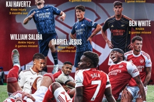 體育資訊9月23日訊 有博主制作阿森納的傷病圖,介紹了阿森納目前的傷病情況。