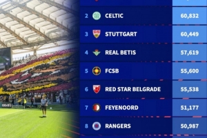 體育資訊9月24日訊 德轉(zhuǎn)盤(pán)點(diǎn)了本賽季歐聯(lián)杯參賽球隊(duì)主場(chǎng)最大可上座人數(shù)榜單,其中羅馬主場(chǎng)居首,具體榜單如下:
