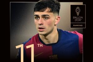 體育資訊09月27日訊 今日《法國足球》官方公布了金球獎評選的投票細節,其中西班牙/巴薩中場佩德里在100位記者中僅獲得了31人的投票,最終獲得124分,位列金球第11名,落后第10的努諾-門德斯47分。