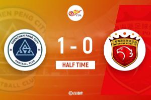 上半場(chǎng)傷停補(bǔ)時(shí)2分鐘,半場(chǎng)結(jié)束,深圳新鵬城暫1-0上海海港。