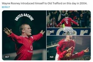 體育資訊9月28日訊 曼聯官方更新社媒動態,回顧2004年的今天魯尼上演曼聯首秀。